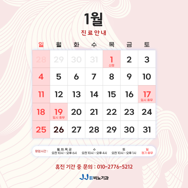 | 공지사항 | 2026년 1월 진료안내 |